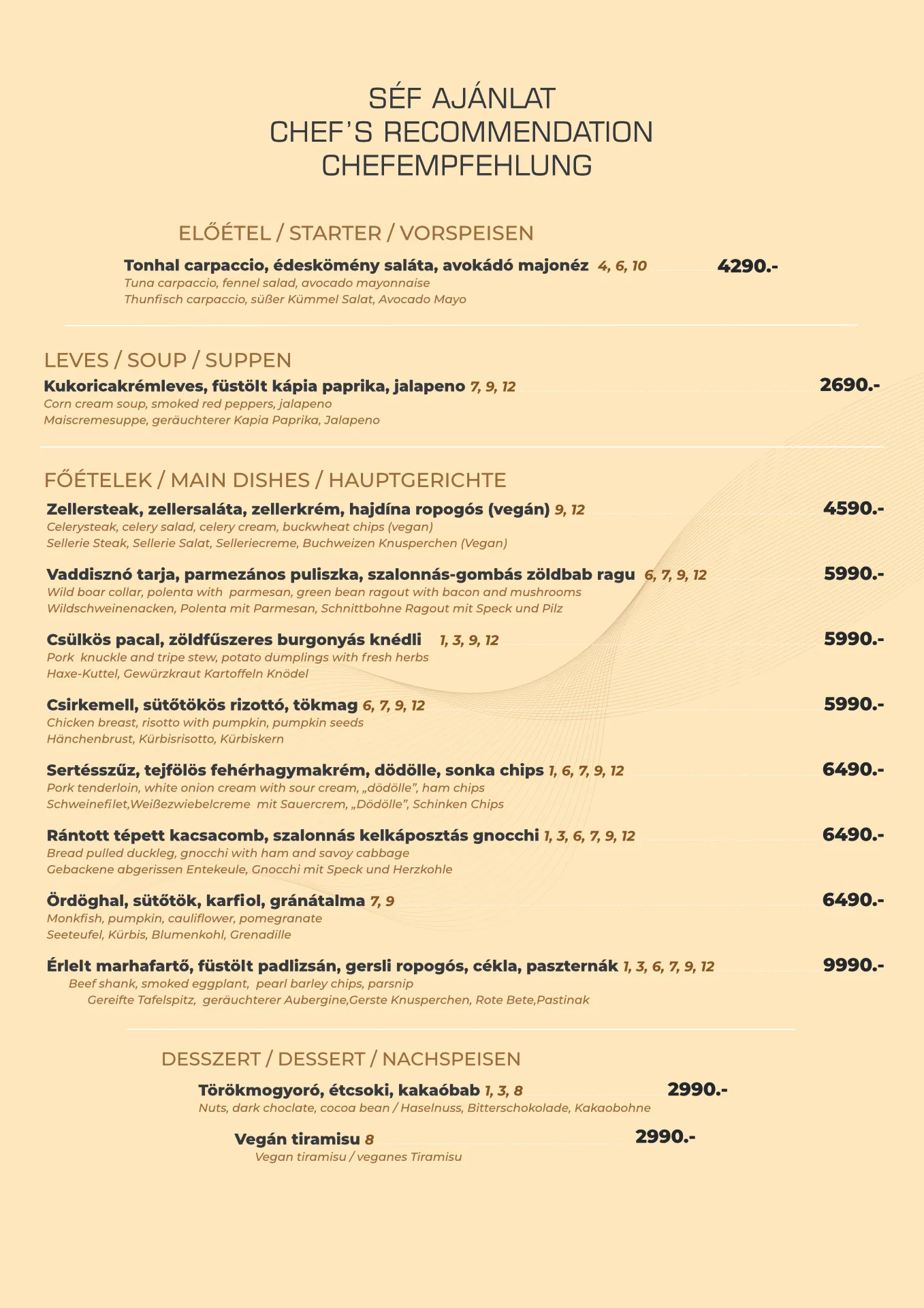 Ételeink választékában mind az egyszerűséget kedvelők, mind a gasztronómiai magasságokba emelkedni vágyók találhatnak kedvükre való fogásokat